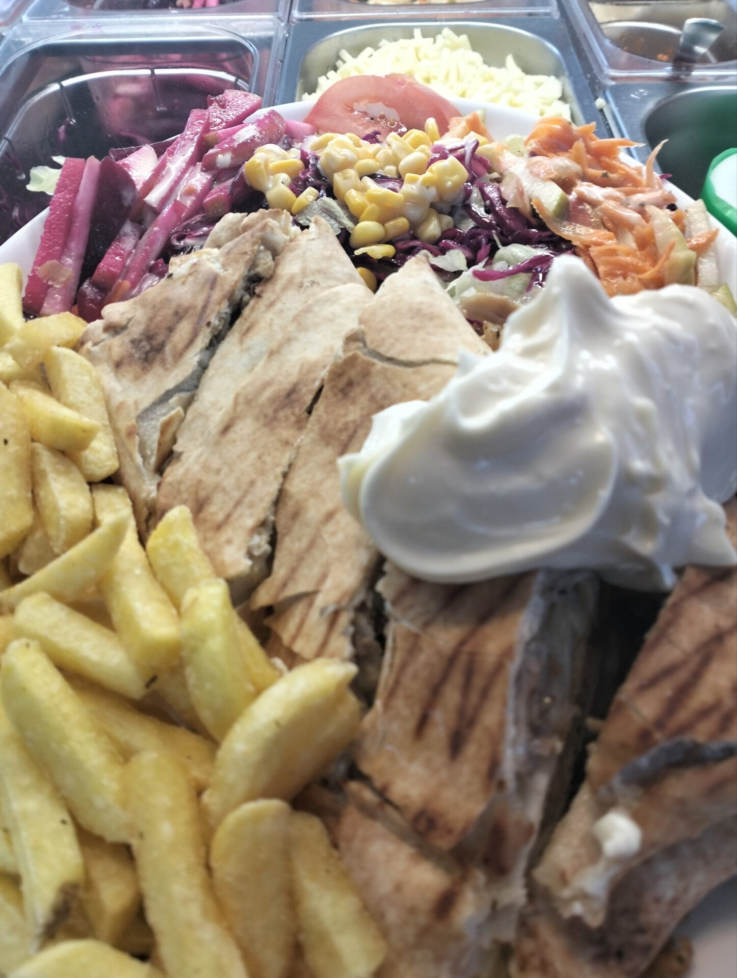 Mon service d’assiette de maître commence par une belle salade, une tranche de pain chaud qui a le goût de frites et un blanc de poulet grillé.
